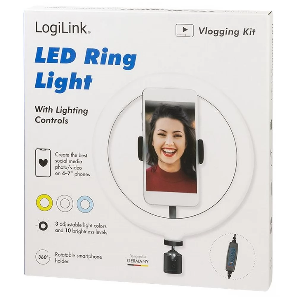 LOGILINK AA0151 20cm negru LED lampă circulară pentru smartphone