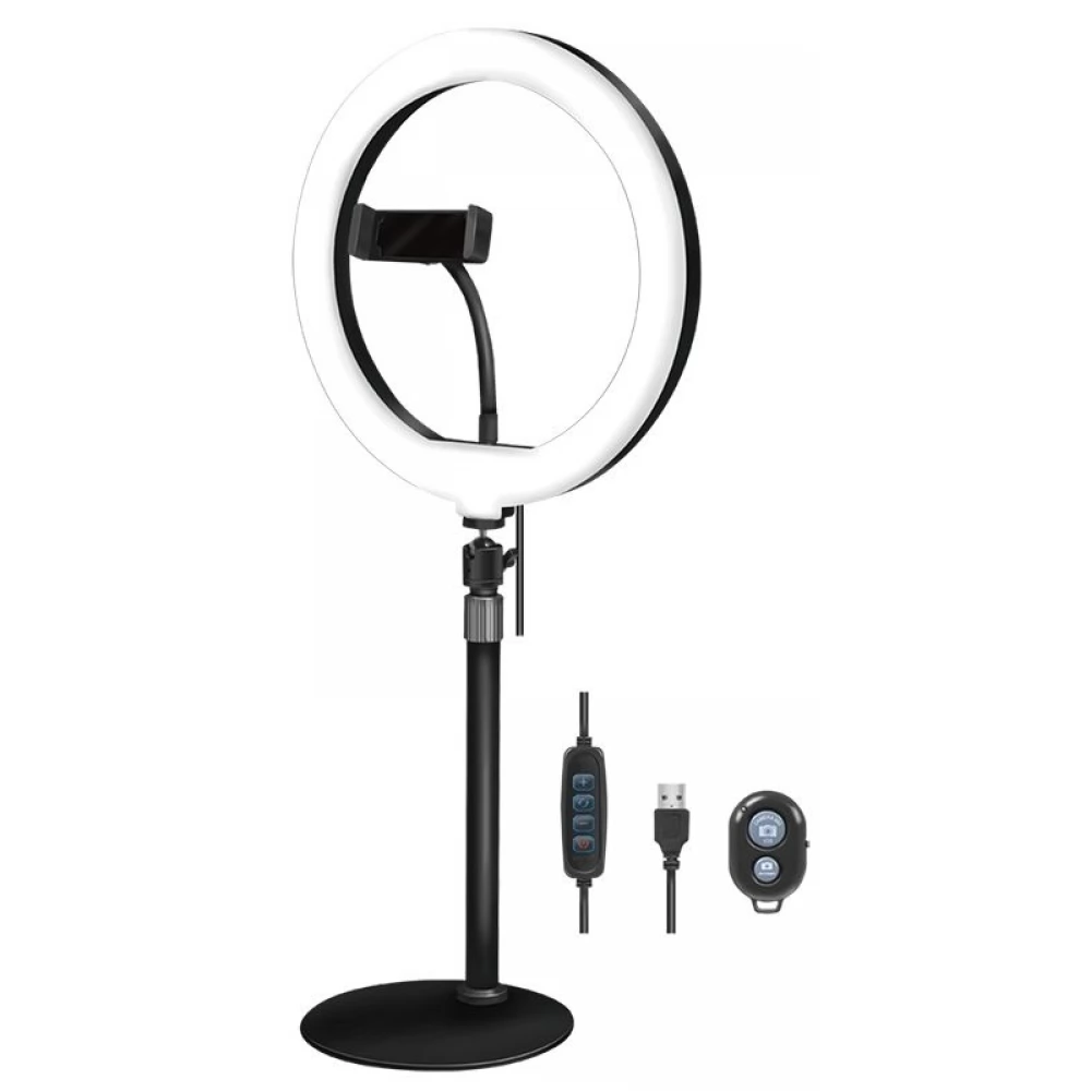 Cerc cu LED negru de 25 cm pentru smartphone.