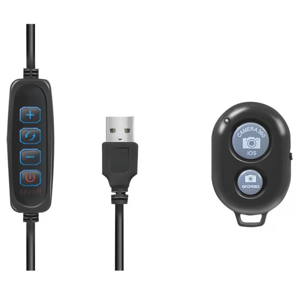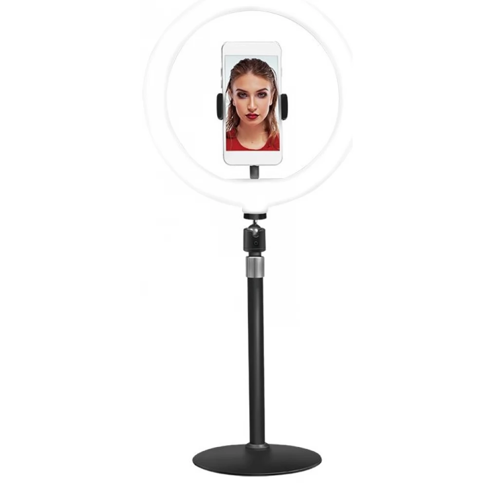 - Suport smartphone cu suport incorporat, inaltime reglabila: pana la 40 cm, diametru lumini inel: 25 cm