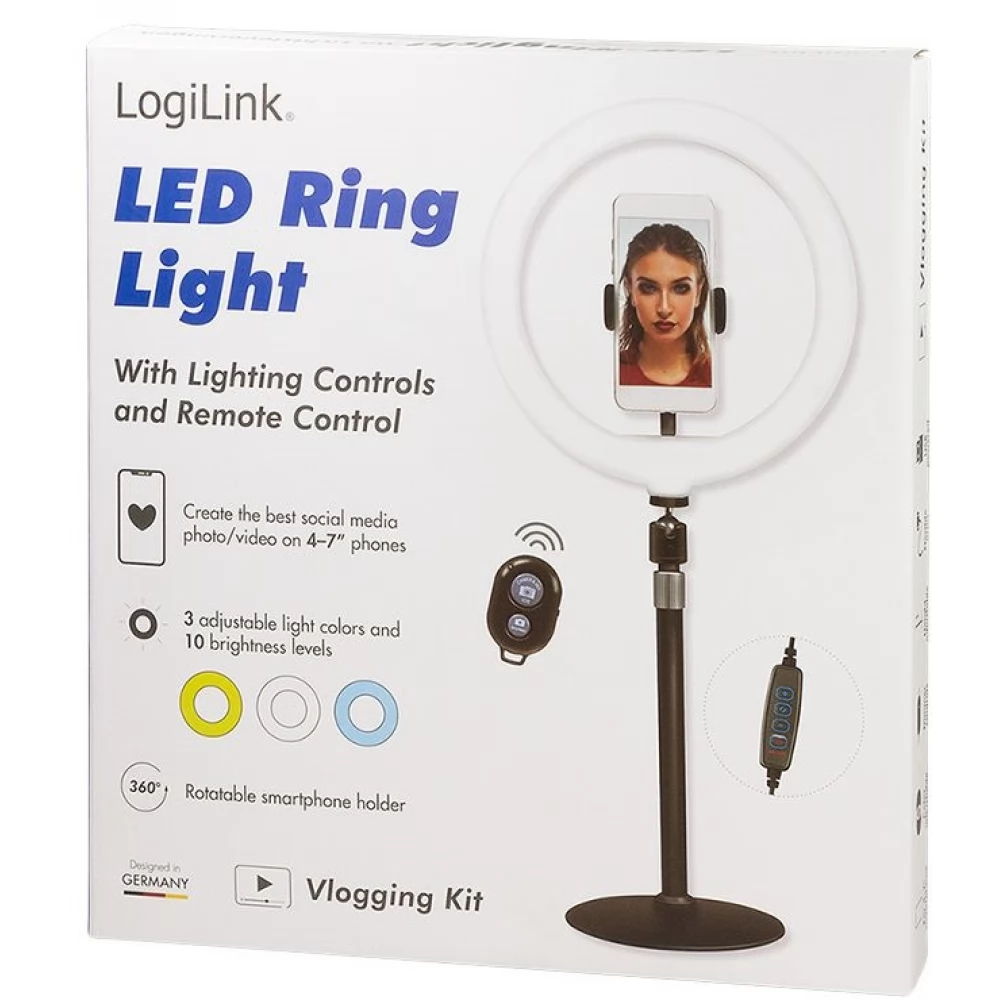 LOGILINK AA0152 25cm negru LED lampă circulară pentru smartphone