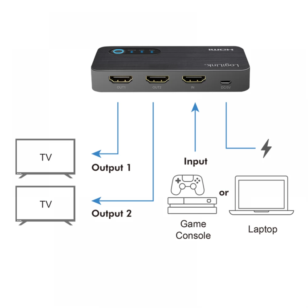 LOGILINK HDMI-Splitter 1x2-Port 4K/60 Hz HDCP HDR CEC Downscaler