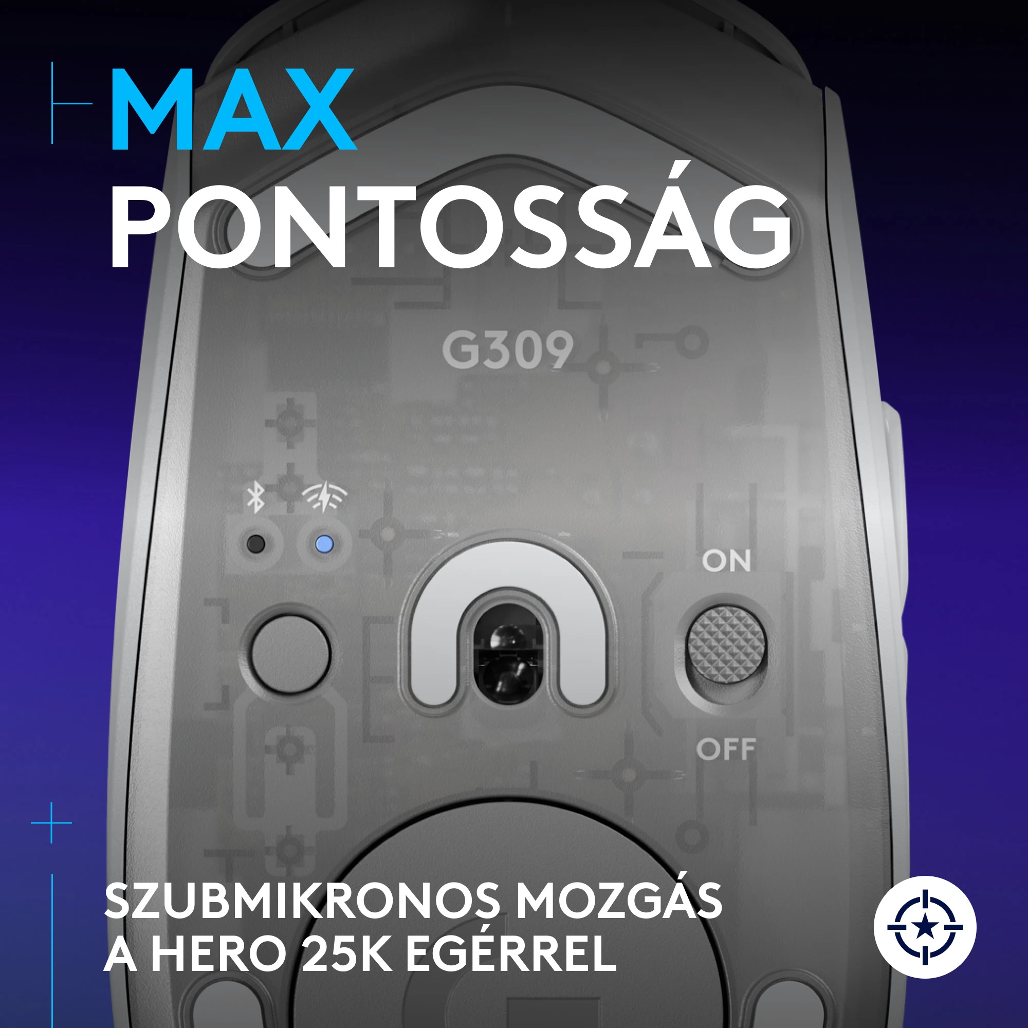 Senzorul G309 Lightspeed Mouse Hero 25K conectează fiecare mișcare a mouse -ului cu gesturile din joc - cu o precizie submoronă. Datorită eficienței energetice de 10 ori mai bune, timpul de funcționare este și mai lung, iar urmărirea IPS de peste 400 de IPS oferă precizie și precizie a punctului de ac: fără netezire, filtrare sau accelerație.