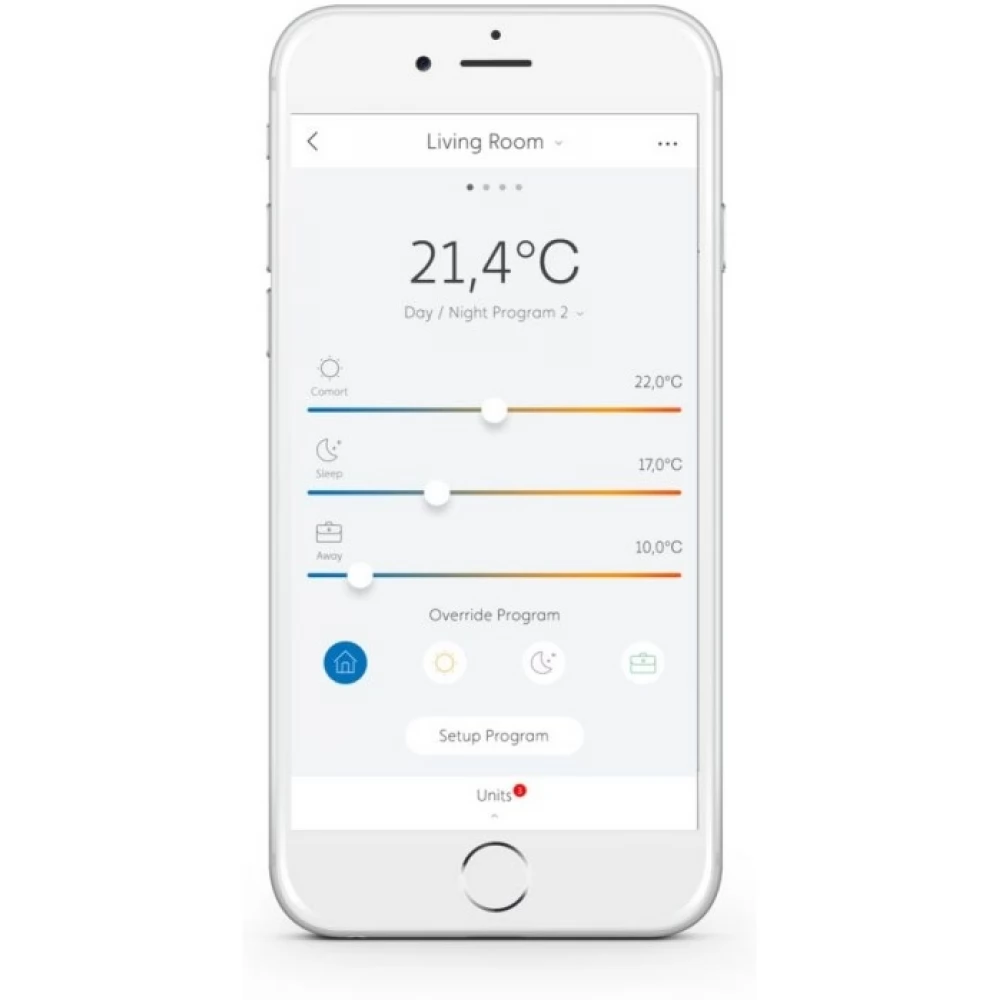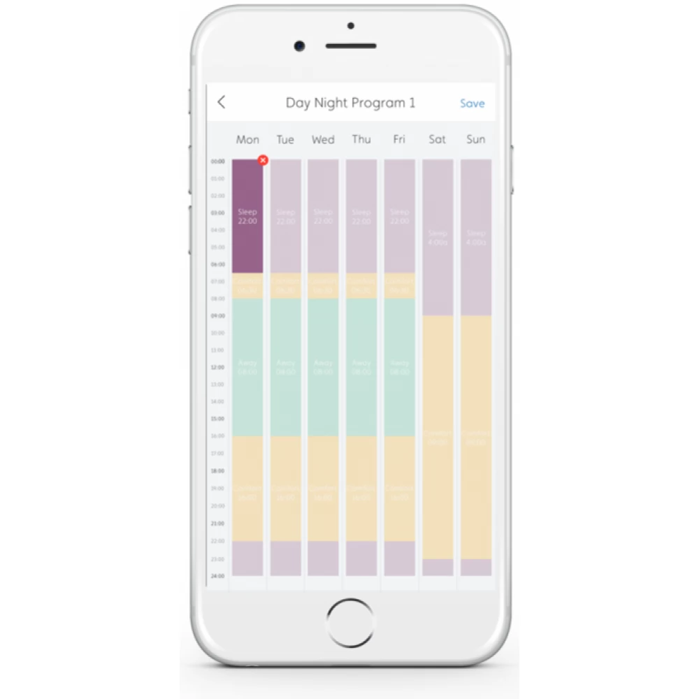 - Încălzire predictivă: priza învață cât de repede/încet crește/scade temperatura camerei în timp. Astfel știi când să pornești încălzirea pentru a ajunge la temperatura dorită la ora programată în aplicație.