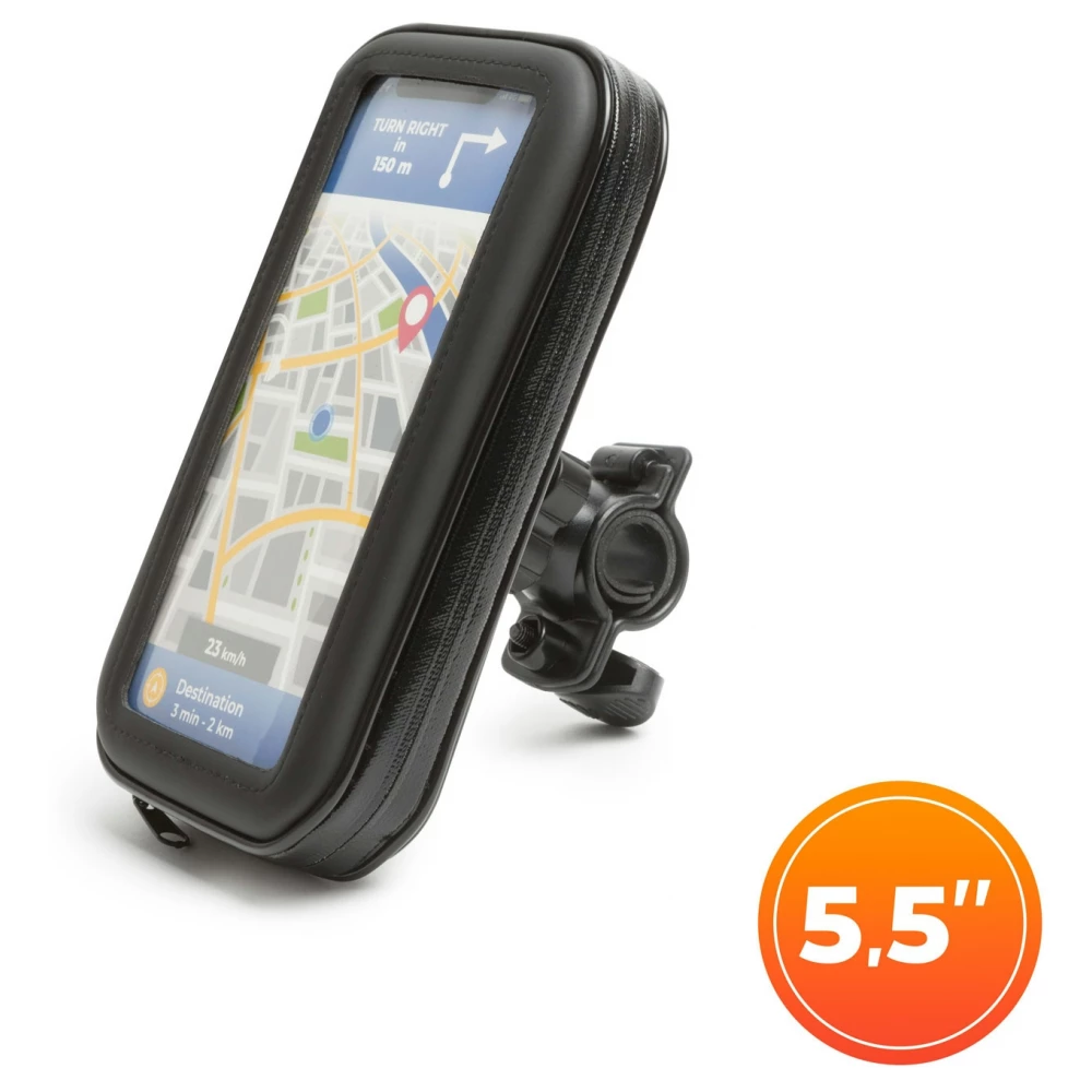 Geanta universala pentru telefon mobil care poate fi montata pe ghidonul oricarei biciclete sau motociclete.
