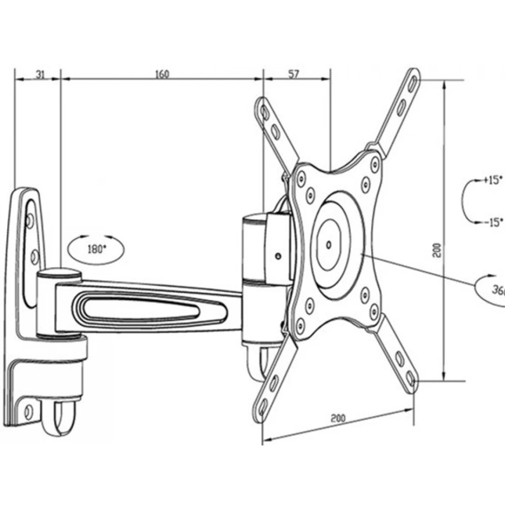 Suport LCD/PLASMA/LED pentru montaj pe perete multiplu, cu brat, rabatabil, prindere 360° culoare neagra, Vesa 75x75 100x100 200x100 200x200