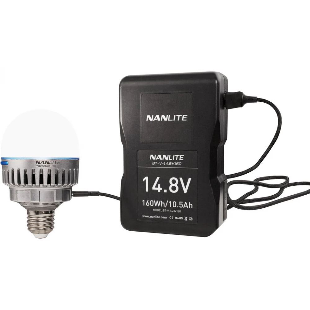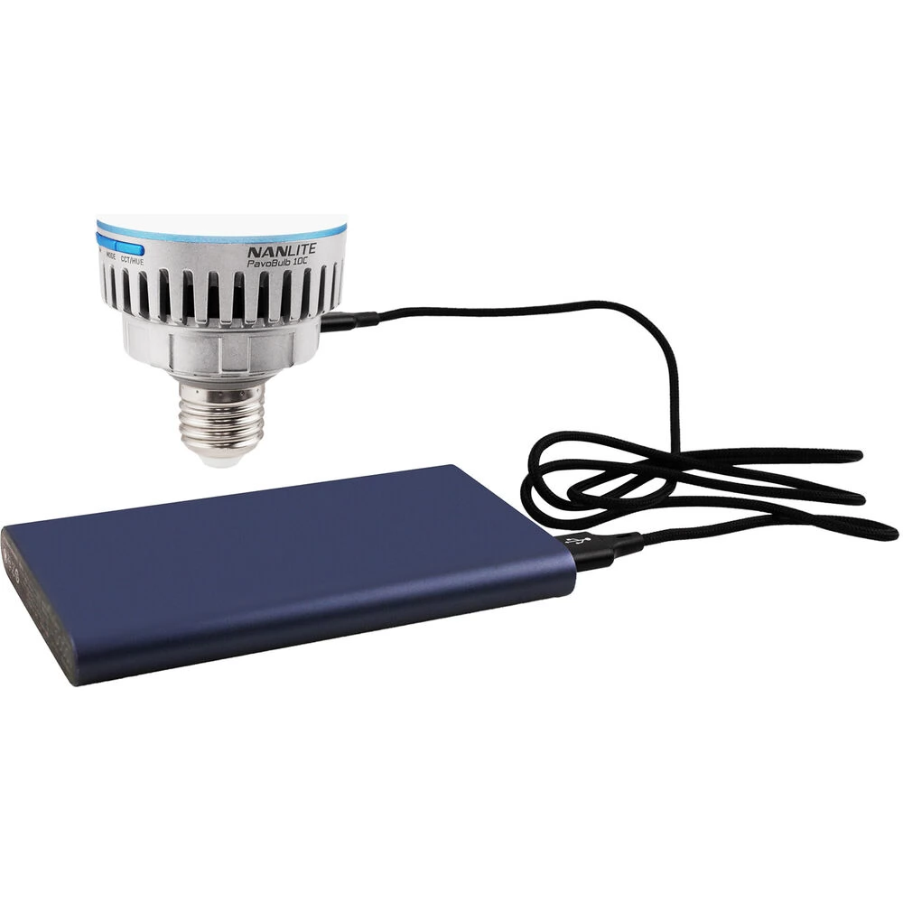 PavoBulb 10C oferă mai multe opțiuni de alimentare, inclusiv o intrare AC priză E27 și o intrare USB-C DC. In plus, NANLITE ofera si alte accesorii, cu ajutorul carora putem instala pe locatie becul PavoBuln 10C si mai versatil. Astfel este priza magnetică E27 (AS-MBA-E27), care poate fi atașată la orice suprafață metalică și conectată la o priză convențională, sau adaptorul E27 NP-F (BT-BA-SNP-E27).