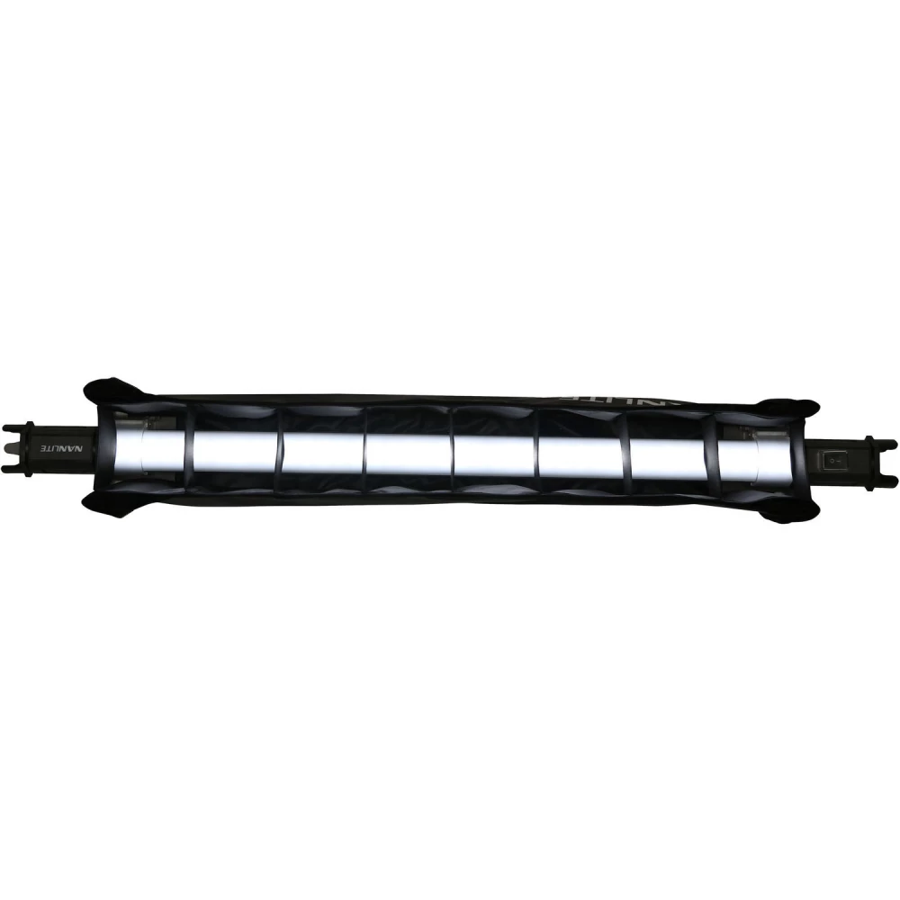 Ușile din țesătură Nanlite și grilajele de tip fagure pot fi atașate la tuburile fluorescente LED Pavotube 15C cu cleme cu diametrul T12 pentru a minimiza pierderea de lumină și pentru a oferi direcție. Instalați tubul fluorescent LED Pavotube 15C cu „ușile cu găuri” din material textil reglabil și modificați unghiul fasciculului de lumină de la 180° la sub 5°. Adăugați grila de țesătură pliată la 45° pentru a ilumina selectiv obiectele fără a compromite calitatea luminii difuze a lui Pavotube. Desi este facuta pentru Nanlite Pavotube 15C, alte cca. De asemenea, este compatibil cu lămpi fluorescente T12 de 1,2 m. Este confectionat din nailon rezistent la rupere si se pliaza plat pentru transport.