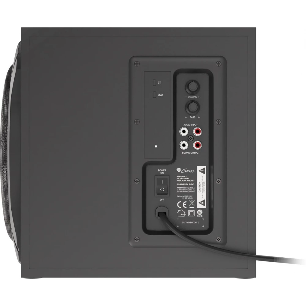 Pregătiți-vă pentru o experiență sonoră cu adevărat realistă în timp ce vizionați filme, ascultați muzică și jucați - trebuie doar să conectați difuzoarele de performanță ultra-înaltă Genesis Helium 610BT (NCS-1408) și întreaga cameră va fi umplută până în tavan cu o claritate de lux. și un sunet cu adevărat puternic. Basul foarte puternic este asigurat de un subwoofer de 30 W RMS și are o structură din lemn proiectată inteligent, cu un sistem Bassreflex în partea din spate a difuzorului. Pe de altă parte, sunetele înalte și medii-înalte sunt furnizate de două difuzoare satelit, puterea lor totală RMS este de 30 W și sunt echipate cu o membrană de 3 inci. Datorită ecranării magnetice, difuzoarele nu interferează cu alte dispozitive. Nivelurile de joase și înalte pot fi ajustate utilizând panoul de control situat pe partea laterală a subwooferului.