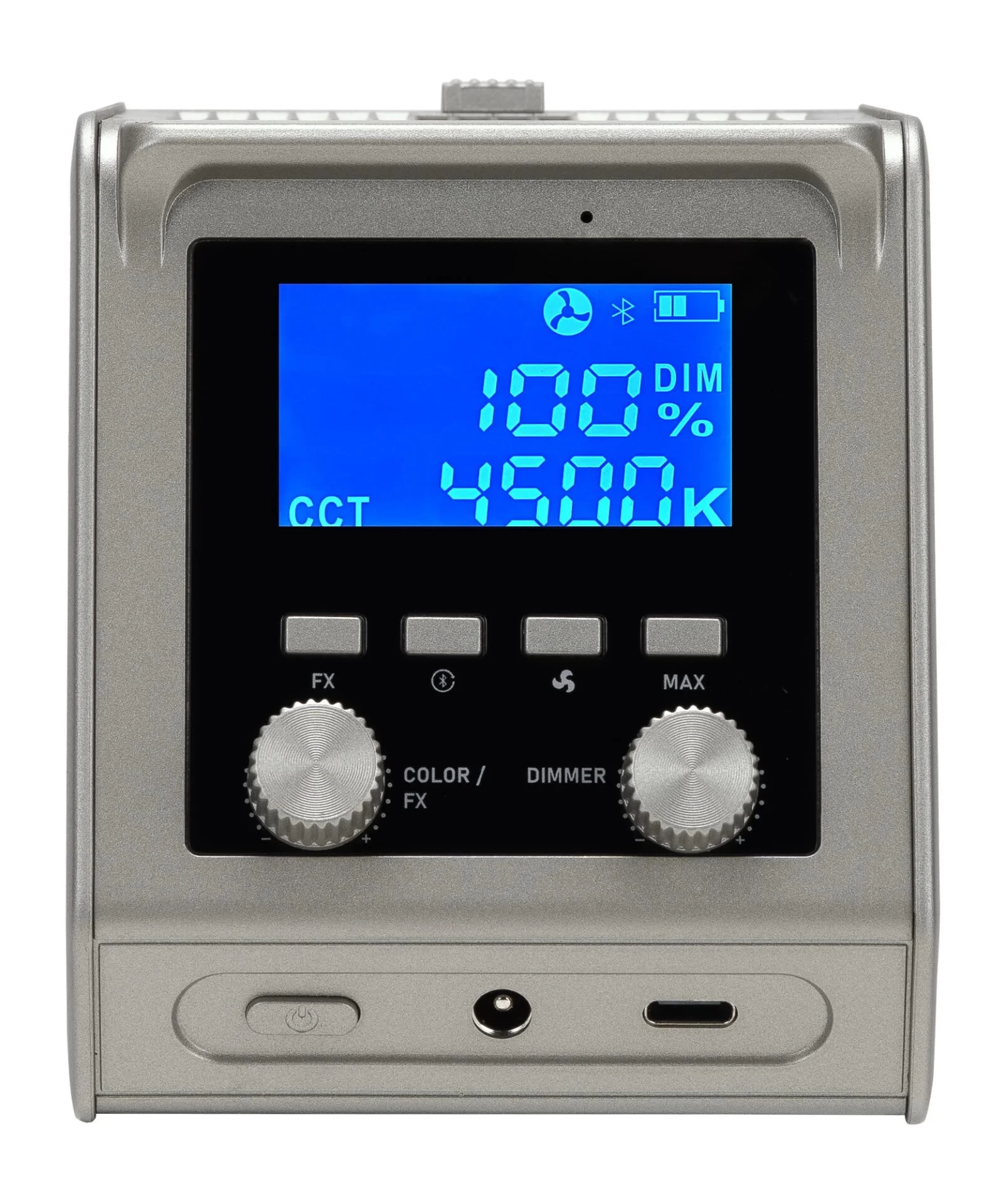 Newell Zora 90 RGB este o lampă cu LED -uri compacte de 100 W. Reglabil (2700-6500 K) într-o gamă largă de temperatură a culorii, oferă o gamă completă RGB, CRI ridicate (≥97) și până la 20 de efecte de lumină. Bateria încorporată de 4500 mAh oferă mobilitate și oferă telecomandă (până la 60 de metri) prin intermediul aplicației Linklite.