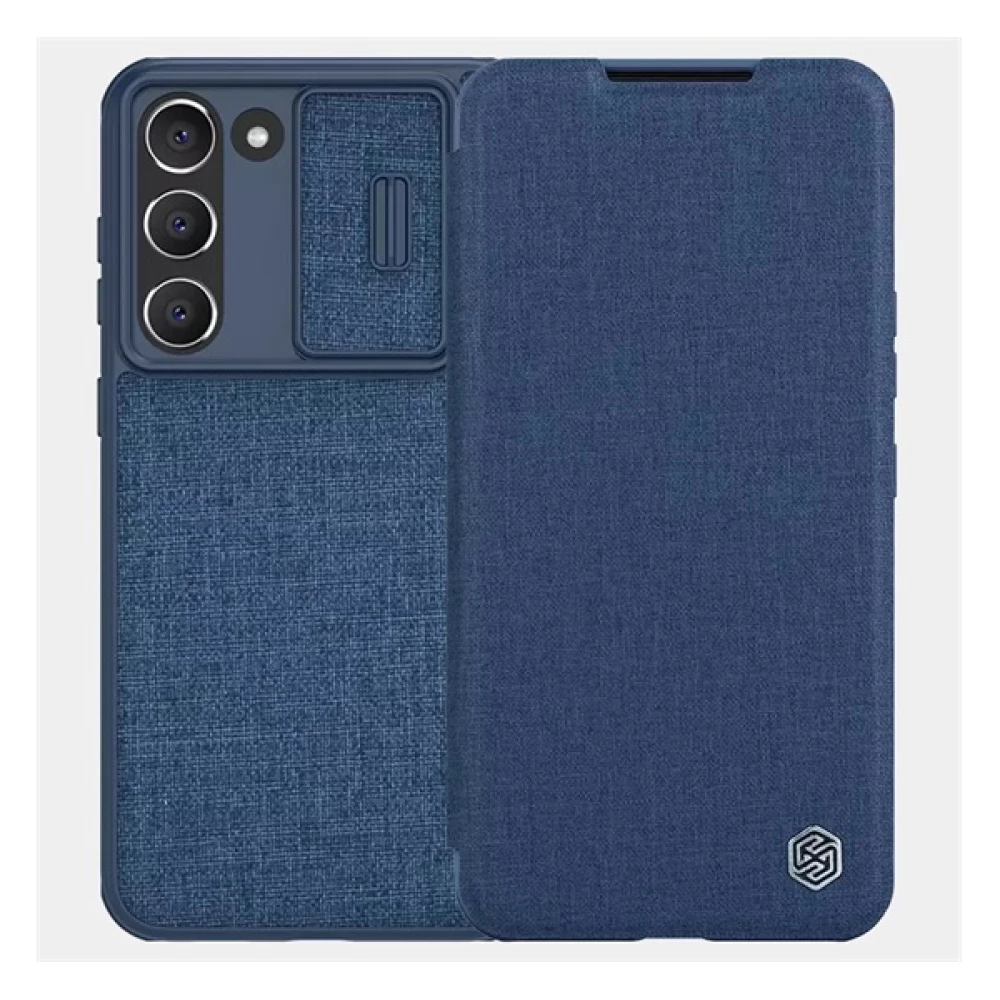 NILLKIN Samsung S23 Plus NILLKIN QIN PRO toc álló, stofă efect FLIP, kameravédő, SÖTÉTKÉK