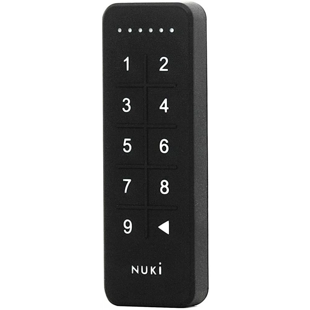 Tastatura Nuki este completarea perfectă la încuietoarea inteligentă Nuki. Poate fi lipit direct de tocul ușii sau înșurubat pe perete. Nu este nevoie să conectați cabluri și fire. Tastatura Nuki funcționează cu baterie și oferă o introducere convenabilă prin introducerea unui cod de introducere din șase cifre. Comunicarea criptată garantează securitate maximă. Cu aplicația gratuită Nuki, pot fi atribuite și gestionate până la 100 de coduri de acces diferite. Tastatura Nuki este ideală pentru persoanele fără smartphone-uri, precum bătrânii sau copiii. Furnizorii de cazare din stațiunile sau apartamentele pot oferi oaspeților lor check-in automat fără contact.