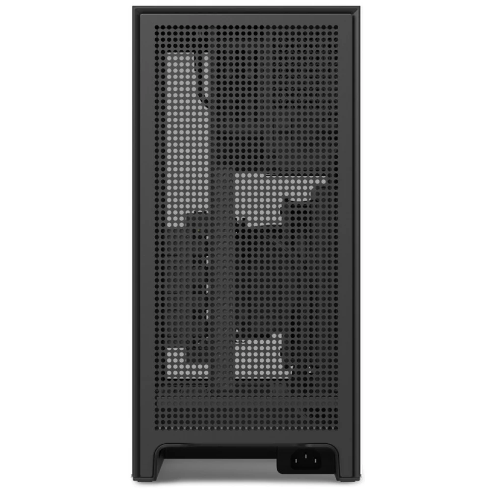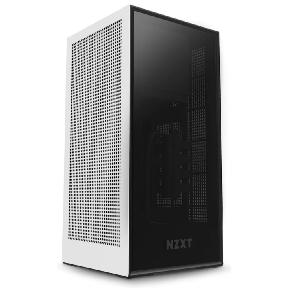 Carcasă de computer cu design turn în format Mini-ITX cu o sursă de alimentare integrată de 650 W și un răcitor de lichid AIO de 140 mm.
