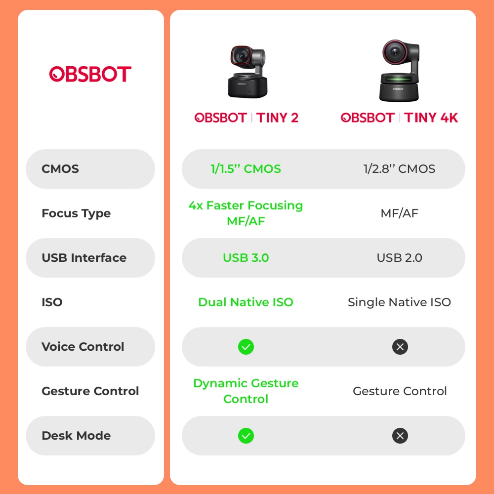 OBSBOT Tiny 2 4K AI-Powered PTZ Webcam