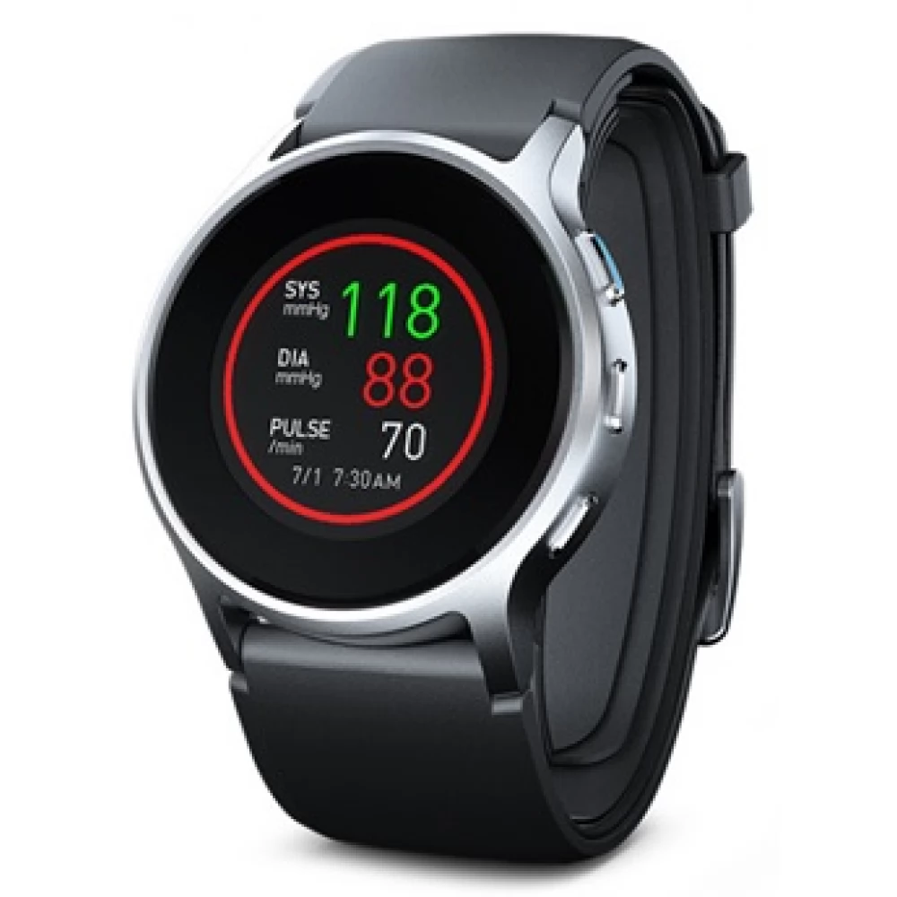 Ceasul inteligent pentru măsurarea tensiunii arteriale HeartGuide este cea mai recentă dezvoltare a OMRON. Datorită manșetei încorporate în centură, garantează o măsurare compactă, dar precisă din punct de vedere medical, oriunde și oricând. Pentru a măsura, trebuie doar să țineți ceasul la înălțimea inimii și HeartGuide vă va măsura tensiunea arterială în câteva secunde și vă va sincroniza datele cu smartphone-ul. Măsurarea tensiunii arteriale acasă sau în deplasare nu a fost niciodată atât de convenabilă! Aplicația pentru smartphone „OMRON HeartAdvisor” conectează dispozitivul la telefon prin Bluetooth și afișează datele de măsurare grafic, cronologic și mediat. De asemenea, monitorizează și evaluează activitatea dvs. și obiceiurile de somn și afișează notificările primite pe telefon (SMS, e-mail, mementouri, apeluri primite).