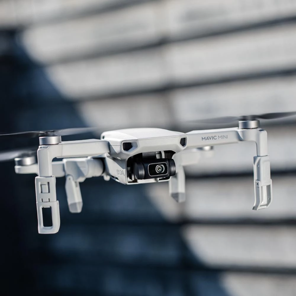 Accesoriu pentru drona DJI Mavic Mini. Cu ajutorul acestuia, designul unității de aterizare a dronei poate fi extins cu ușurință, făcând astfel posibilă aterizarea mai sigură chiar și în zone mai puțin uniforme și pline de resturi.