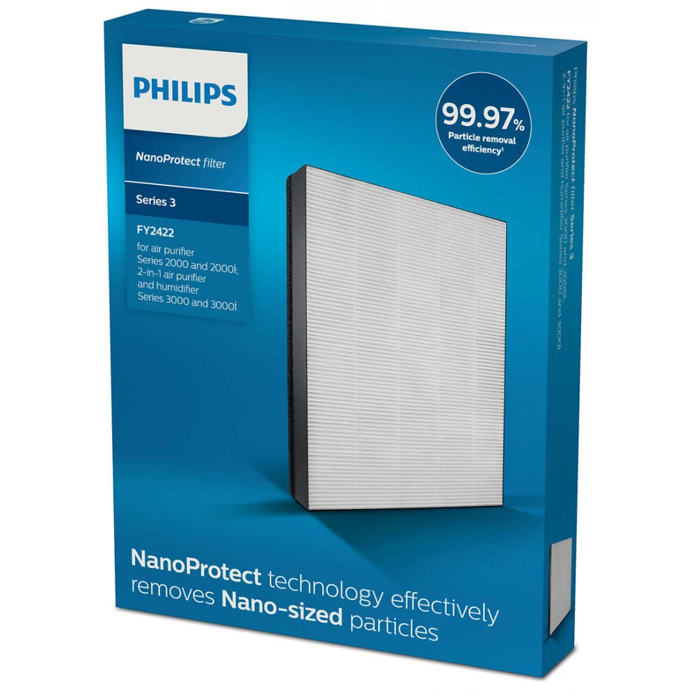 Filtrul Philips NanoProtect S3 este fabricat din material de înaltă calitate. Poate capta 99,97% dintre particule, chiar și până la 0,3 (cea mai comună dimensiune a alergenilor din aer, particule dăunătoare, bacterii și viruși). Datorită structurii strânse și stabile a filtrului de înaltă calitate, tot aerul curge prin filtru și acest lucru asigură o eficiență ridicată de filtrare.