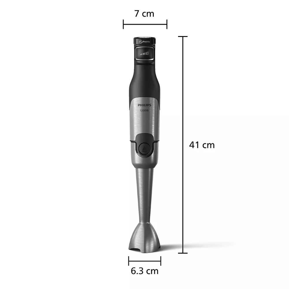 Nu vă faceți griji pentru stropii! Datorită tehnologiei ProMix, apărătoarea unică a lamei oprește atât stropii mici, cât și mari. Datorită formei de undă din partea inferioară a barei de amestecare, mai puține alimente se lipesc de lamă, facilitând curățarea.