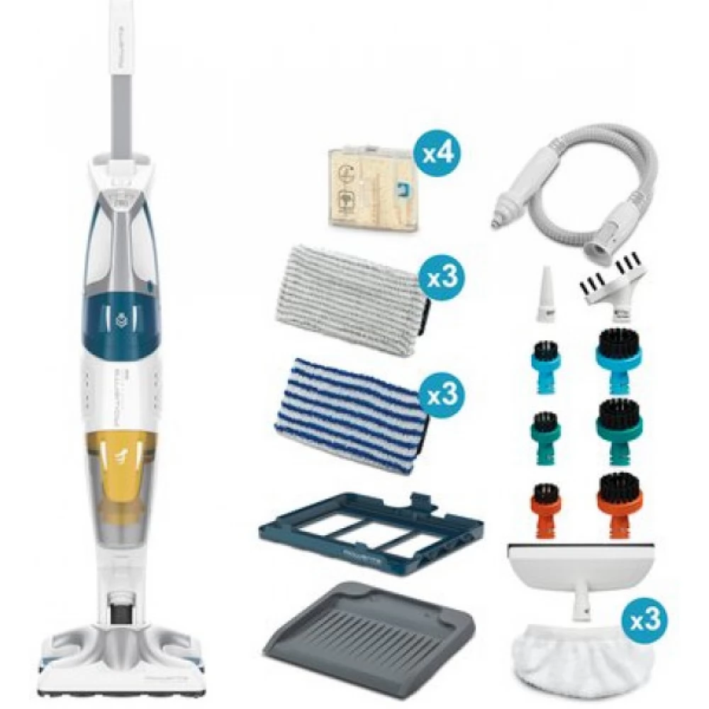 Aparatul de curățat cu abur Rowenta Clean & Steam Ultimate vă economisește timp în fiecare zi și efectuează curățare fără erori, igienă și rapidă pe toate tipurile de podea și suprafețe. Descoperiți cea mai bună curățare într-un singur pas cu un dispozitiv care face totul: aspirarea și curățarea cu abur a podelelor într-un singur pas, plus aparatul de curățat cu abur detașabil de mână pentru a curăța toate suprafețele, complet cu mai multe accesorii.