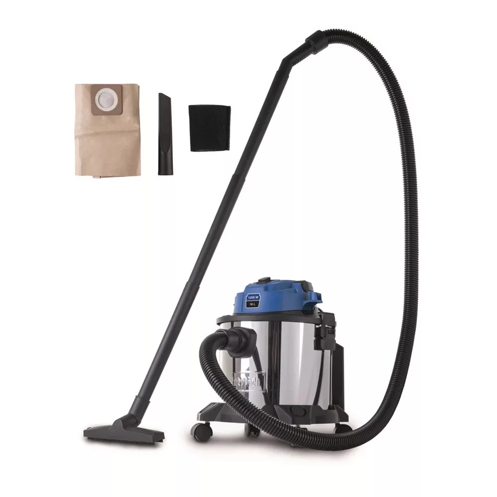 Rezervorul durabil de 16 litri din oțel inoxidabil este echipat cu o eliberare rapidă care permite înlocuirea ușoară a sacului de praf. Inima dispozitivului este un motor electric de înaltă performanță de 1200 W, care asigură o durată lungă de viață și o funcționare fiabilă. Zona mare de lucru este asigurata de cablul de alimentare de trei metri, furtunul de 1,8 m lungime si cele trei tuburi prelungitoare din plastic. Datorită suporturilor practice, accesoriile pot fi depozitate direct pe aspirator, astfel încât totul să fie mereu la îndemână.