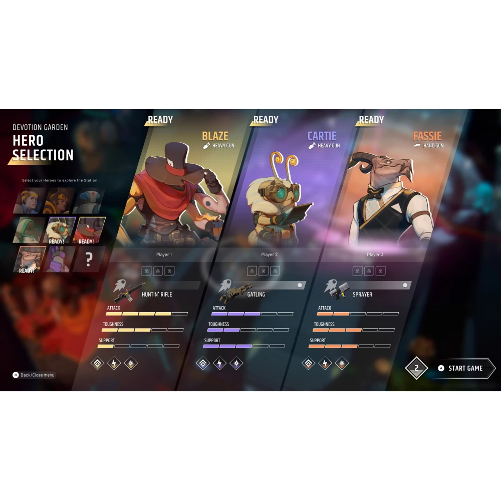 Faceți cunoștință cu echipa colorată de eroi care luptă cu toții pentru un singur obiectiv: să scape de aici! Toți contribuie la misiune. Există Tankul Bunker, care absoarbe daune, Blaze de foc, căruia îi place să arunce lucrurile în aer, sau Shroom, care își vindecă însoțitorii cu tămâia lui „neobișnuită”. Alege-ți eroii și construiește echipa care ți se potrivește cel mai bine. Pe măsură ce îi cunoști, realizezi că toți au propriile lor motivații și secrete...