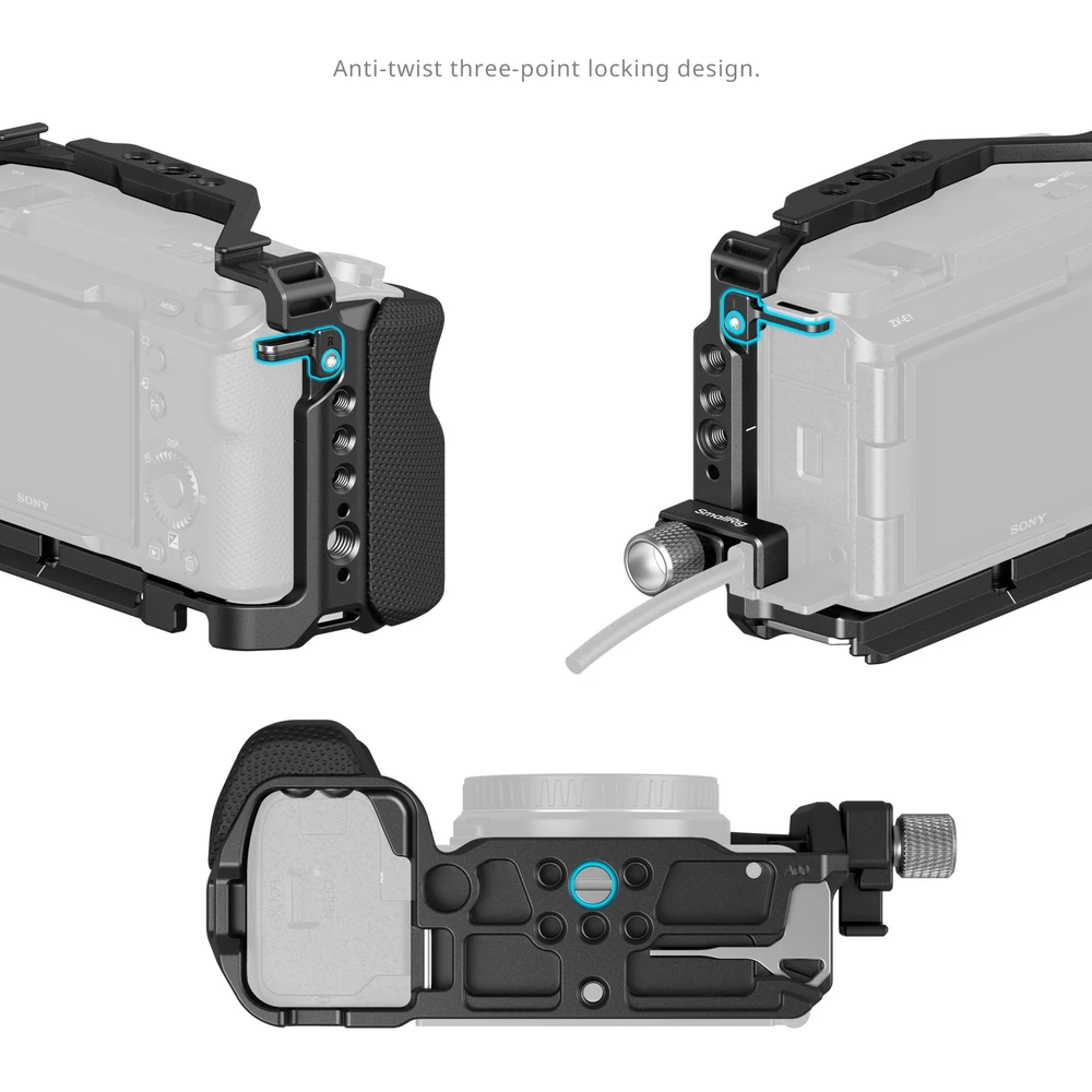 Kitul SmallRig Cage pentru Sony ZV-E1 4257B oferă opțiuni de montare versatile, protejând în același timp corpul camerei și interfața HDMI. Setul include o cușcă cu mâner din silicon integrat și clemă pentru cablu HDMI.