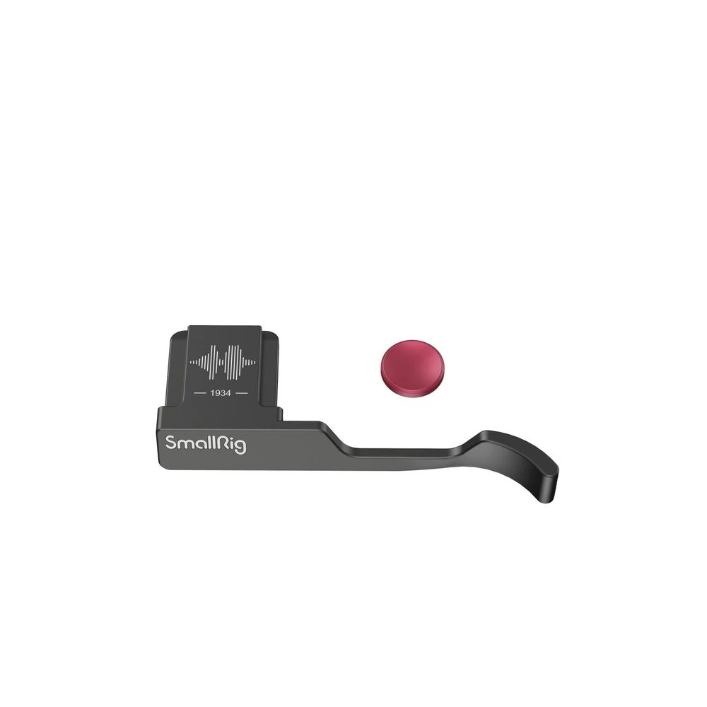 Mânerul SmallRig pentru degetul mare pentru FUJIFILM X100VI / X100V (Negru) 4559 este proiectat pentru a îmbunătăți aderența și pentru a crește siguranța atunci când țineți camera cu o singură mână. Suportul pentru degetul mare este ușor de instalat prin glisarea acestuia în pantoful fierbinte al camerei. Designul concav al suportului crește siguranța și confortul la fotografierea cu o singură mână, facilitând crearea de conținut. Suportul pentru degetul mare este gravat cu unda sonoră „FUJIFILM” și anul în care a fost fondată, ca un tribut adus FUJIFILM. Tampoanele din silicon încorporate protejează corpul camerei și componentele electronice ale pantofului cald de praf, rugină și scurtcircuite electronice. De asemenea, are un buton de eliberare care este moale și plăcut la atingere.