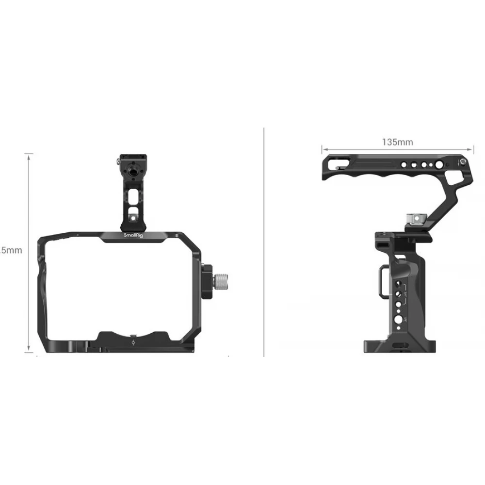 Kitul de bază SmallRig pentru camerele Sony Alpha 7 IV/Alpha 7S III este conceput pentru a facilita fotografierea cu unghi mic și pentru a proteja camera, oferind în același timp o gamă largă de suporturi pentru accesorii. Include o cușcă, o clemă pentru cablu HDMI și un mâner superior. Mânerul superior oferă o senzație confortabilă și permite transport ușor și fotografiere cu unghi mic. Găurile filetate de 1/4"-20, găurile de montare ARRI 3/8"-16, pantofii fierbinți și șinele NATO acceptă suporturi pentru monitor BSE2294 și 2903, microfoane, lumini LED și accesorii NATO. Clema de cablu HDMI, care este instalată pe partea stângă a cuștii printr-un șurub de 1/4"-20 și doi știfturi de fixare, previne îndoirea și fixează cablurile cu șuruburi de mână pentru a proteja interfața și pentru a asigura stabilitatea transmisiei semnalului. În plus, găurile laterale ale cuștii de pe ambele părți vă permit să atașați curele de mână. Cușca vine, de asemenea, cu o șurubelniță magnetică cu cap plat și cheie hexagonală pentru demontare și asamblare ușoară.