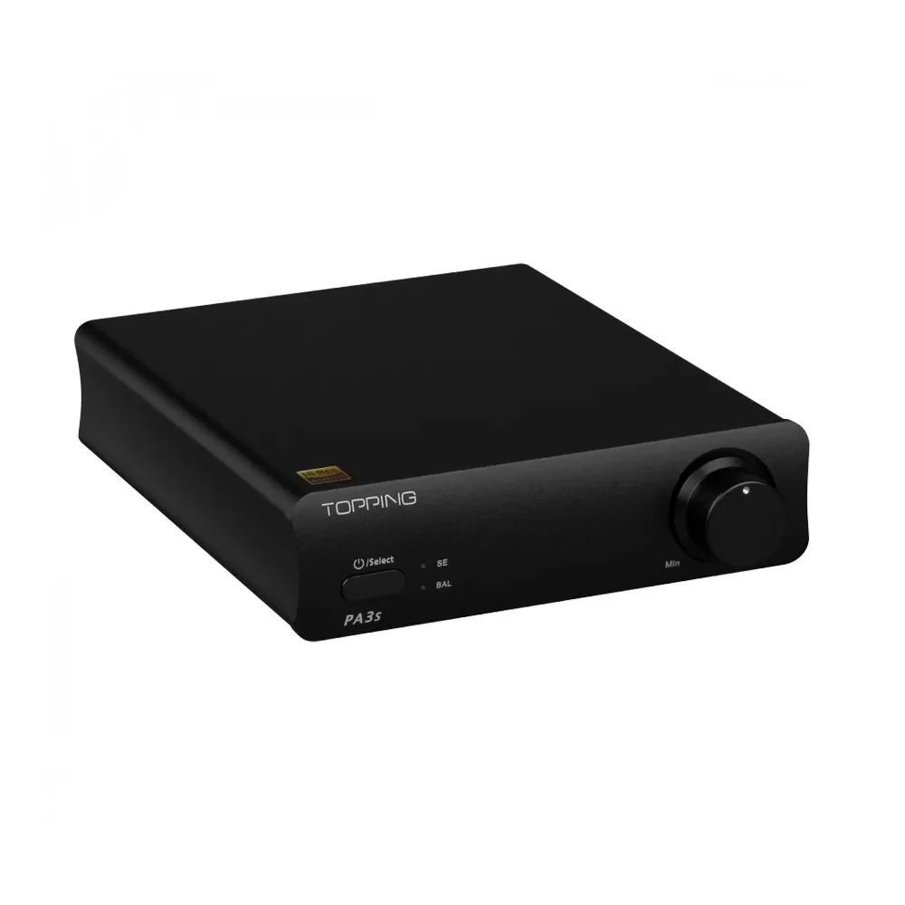 Topping PA3s este un amplificator de clasa D compact, dar puternic. Funcționarea sa se bazează pe două cipuri de amplificatoare Infineon MA12070 de clasă D. Dispozitivul are o pereche de mufe simetrice și o pereche de intrări RCA tradiționale.