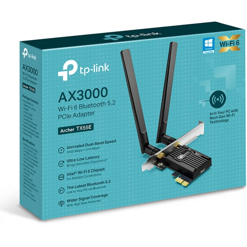 TP-LINK ARCHER TX55E AX3000 Wi-Fi 6 Bluetooth 5.2 PCIe Adapter