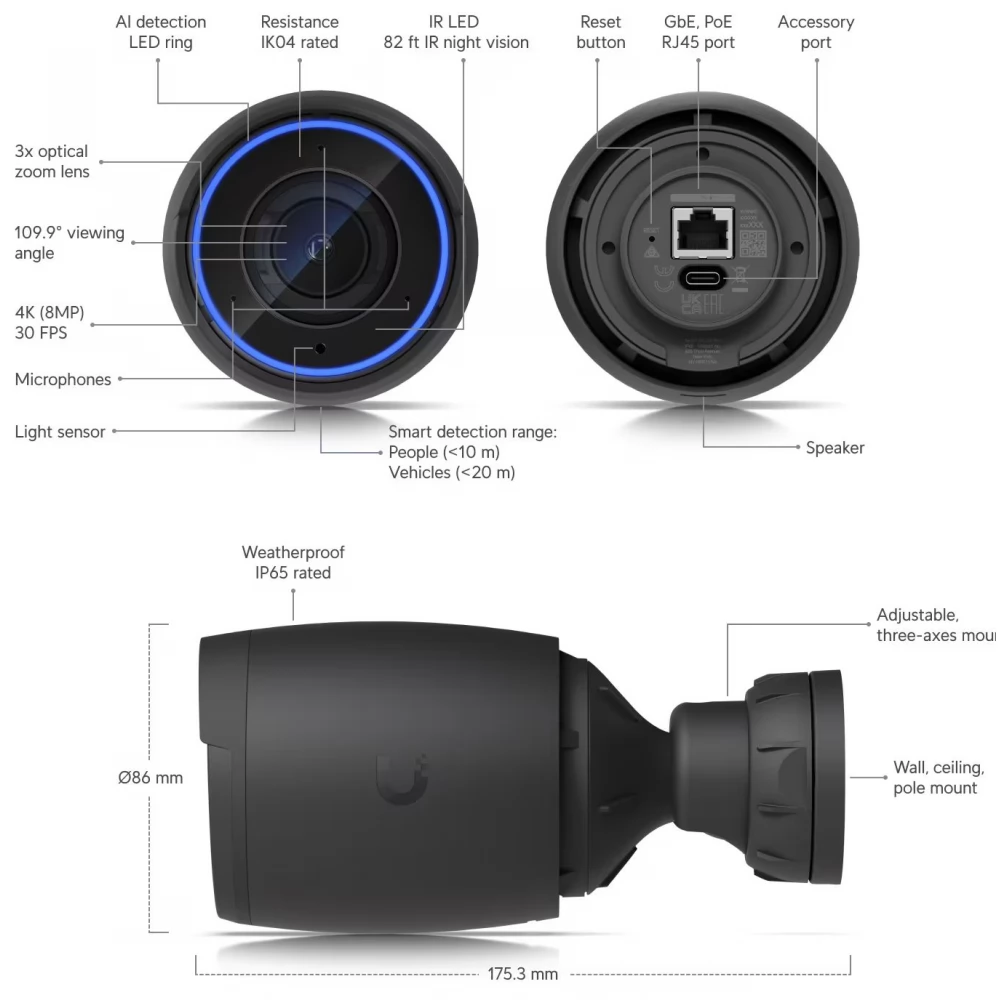 UBIQUITI 8MP IP cameră 4.1 - 12.3 mm negru UVC-AI-PRO