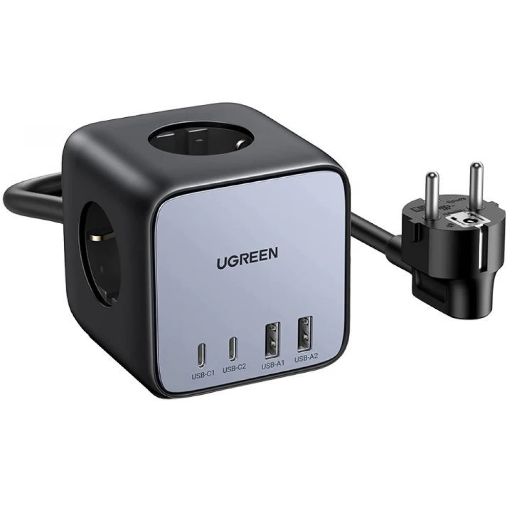 UGREEN CD268 Splitter 3 priză 4x USB 1.8m negru-gri cu comutator