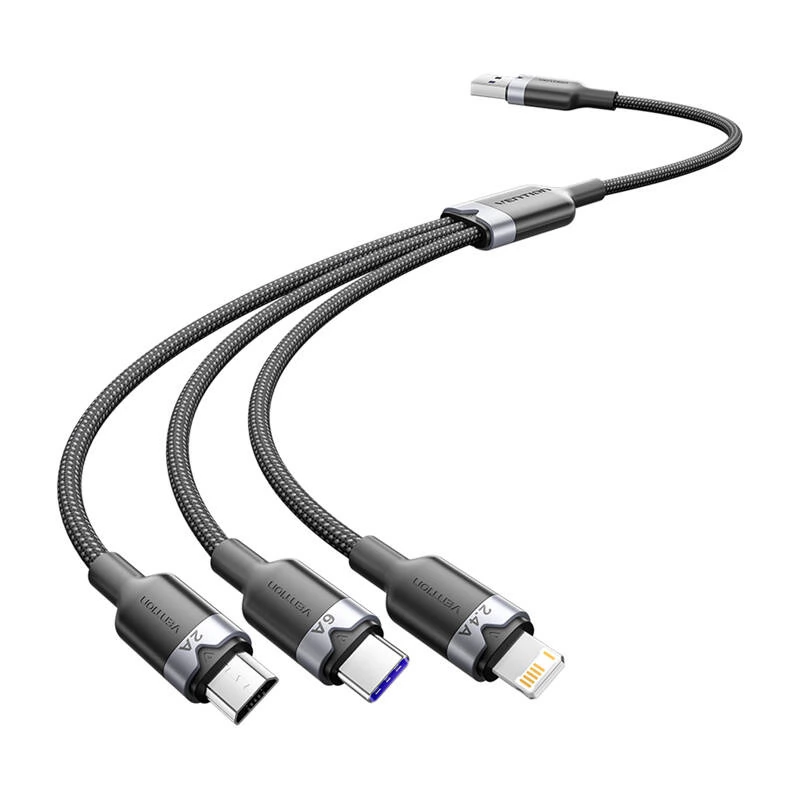 VENTION USB Lightning + Micro USB + USB Type C Convertor Negru 1.5m CTRBG
