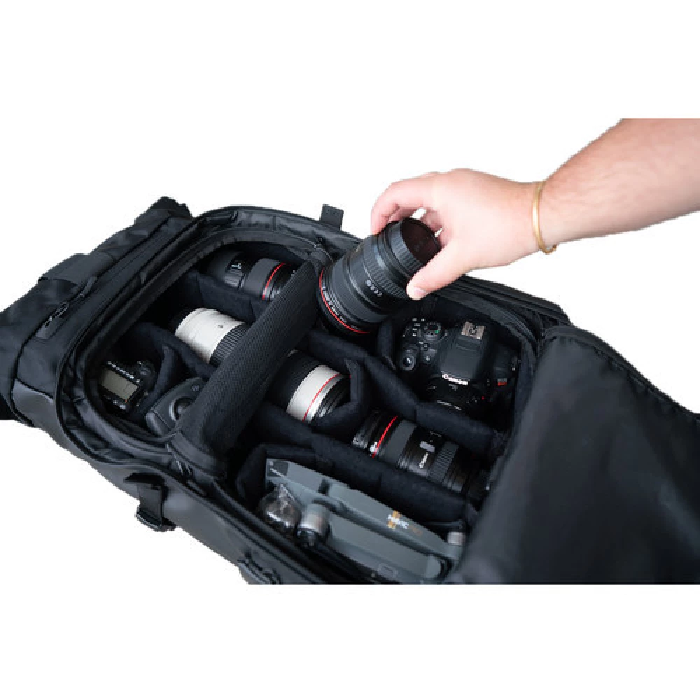 - Pentru depozitarea a 2 camere (DSLR) si 4-6 lentile si drone