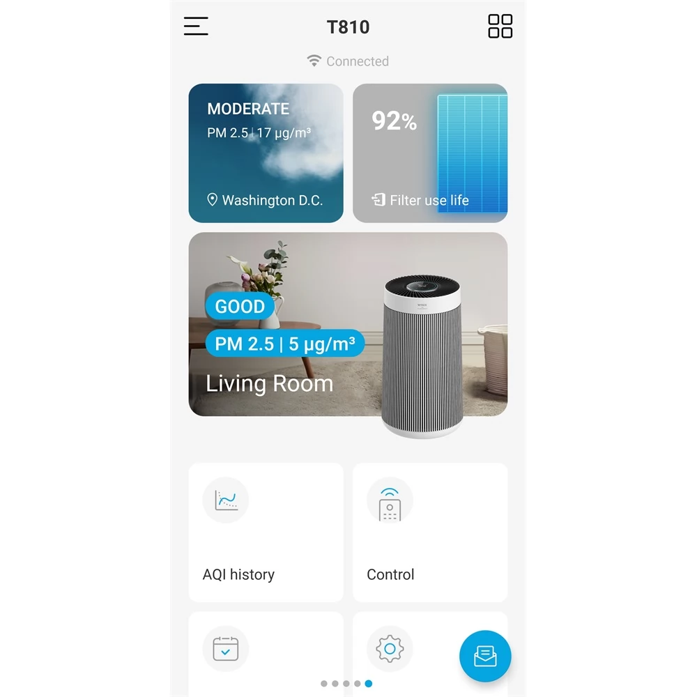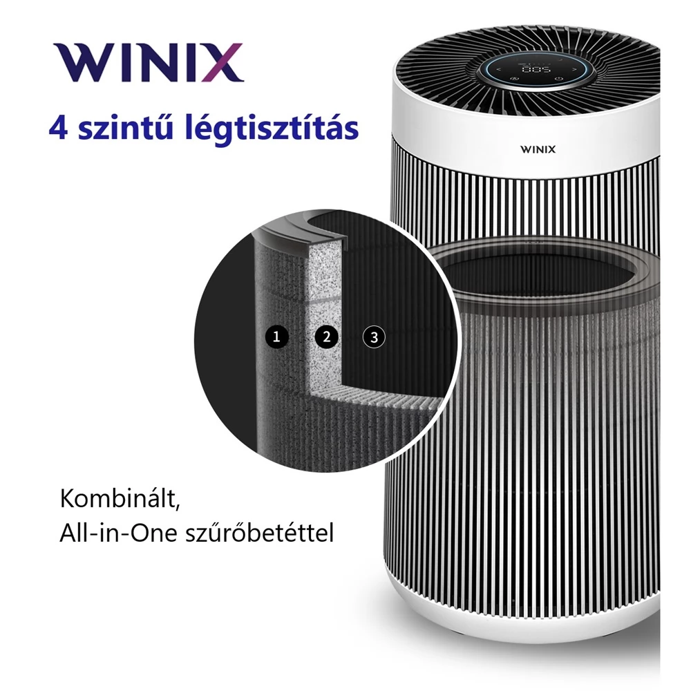 WINIX T800 este un dispozitiv remarcabil din cea mai înaltă categorie de purificatoare de aer WINIX, ca o combinație de tehnologii profesionale de purificare a aerului și design elegant, centrat pe utilizator. Aplicația Winix Smart, care permite și controlul de la distanță, o face ușor de utilizat, în timp ce capacitatea sa de purificare a aerului este destul de excepțională cu purificarea aerului în 4 etape. Datorită dimensiunilor sale compacte, manevrării ușoare și designului modern, este extrem de practic și foarte popular. Procesul de curățare a aerului în mai multe etape este asigurat de o inserție de filtru All-in-One, care constă dintr-un prefiltru, un filtru de carbon și un filtru HEPA eficient de 99,99%, care este completat de tehnologia Plasmawave® și potrivit pentru curățare aerul spațiilor mai mari.
