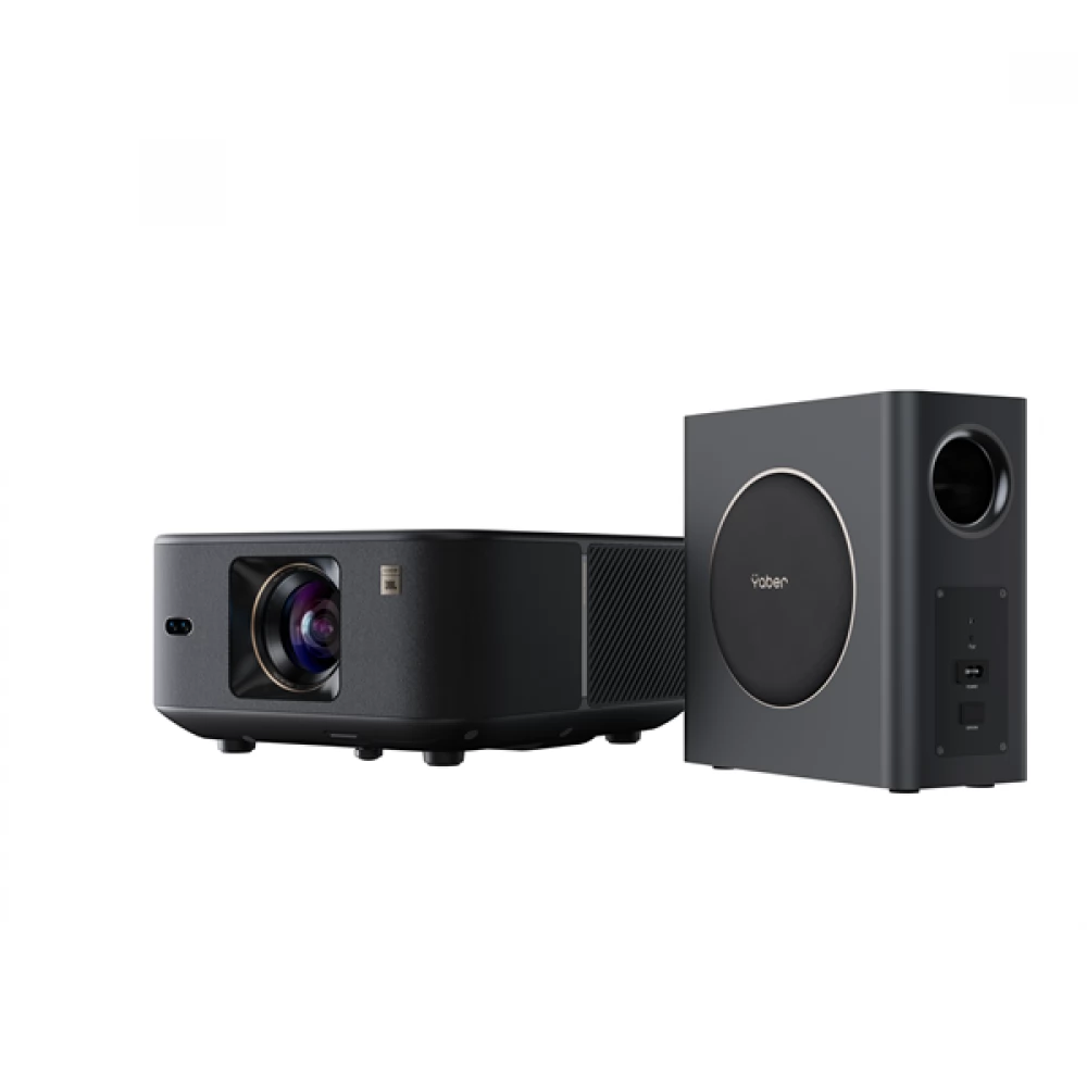 Proiector home theater - LCD LED, Full HD, rezoluție nativă 1920 × 1080, 16:9, 1600 ANSI lm, difuzor JBL, cu subwoofer.