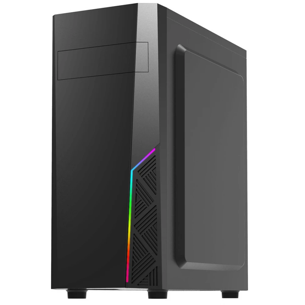 Carcasa computerului cu design Midi-tower format ATX cu elemente vizuale RGB.